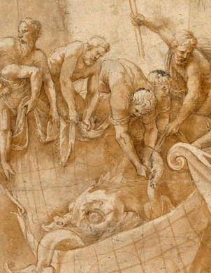 If you look him up, you might find his images from a collaboration with Pietro Aretino of Venice, resulting in, perhaps, some of the most scandalous erotic art of the Renaissance in their “Sonetti Lussuriosi.”
